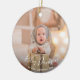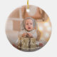 This charming baby's first Christmas holiday ornament features your baby's photo and name or any other message on the front and back. PHOTO TIP: Crop your high resolution photo into a square as you want it to appear on the ornament BEFORE you upload it. CHANGE the saying, the fonts, font colour using the Customise further link.