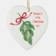 Celebrate Baby's First Christmas with this charming personalised keepsake ornament~ a beribboned sprig of mistletoe on the front complements the sweet Victorian-styled baby buggy on the other side