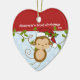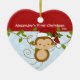 Baby's First Christmas Ornament features an adorable Santa monkey wearing a Santa hat swinging on a jungle set on a blue & white polka dotted background! Available in a heart shape in our shop! Personalise with your baby information and date and you're all set to go! Wonderful dated keepsake gift for your baby's 1st christmas.