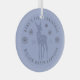 Modern baby dusty purple ornament for baby's first Christmas personalise with baby's name, year, deer with a bow, snowflakes and curve lettering in serif font.