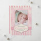 Send out your Baby's First Christmas photo on this beautiful Pink and Cream Christmas greeting card design with Snowflakes, pink stripes and the words "Merry Christmas" in fancy script. Shown on Metallic Ice Paper. Replace the sample photo with your own and add your names. Need help customising contact luxuryweddinginvitations@gmail.com