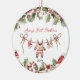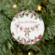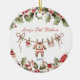 Celebrate a magical milestone with this charming Baby’s First Christmas Ornament. Beautifully designed with festive holiday details, the front features an adorable clothesline with baby clothes, mittens, and booties surrounded by holly, berries, candy canes, and seasonal accents. Personalise it with your baby’s name and year to create a keepsake that will be cherished for years to come.
