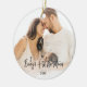 Cherish your first memories with your baby with this lovely Christmas ornament. The simple design features "Baby's First Christmas" in a modern script font on the front with your baby's name and birth stats on the back. Personalise with your photos. This ornament will be a keepsake to treasure forever.