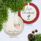 Commemorate your precious bundle's First Christmas with our personalised and dated newborn keepsake ornament. The front side of our ornament displays your newborn's photo and name with a cute little watercolor holly berry in red and green. The back displays "First Christmas" in modern script typography, the year, repeats the photo faded in the background, and has a matching watercolor holly branch. #BabysFirst #FirstChristmas #Ornament