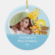 Cute Photo Christmas Ornament featuring an adorable giraffe and jungle animal friends set on a blue background, just add YOUR PHOTO! Perfect for first christmas & second christmas. A Wonder Christmas gift sure to be treasured for many years to come.