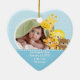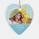 Cute Photo Christmas Ornament featuring an adorable giraffe and jungle animal friends set on a blue background, just add YOUR PHOTO! Perfect for first christmas & second christmas. A Wonder Christmas gift sure to be treasured for many years to come.