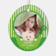 Cute Photo Christmas Ornament featuring an adorable baby in a pea pod with green & white striped background, just add YOUR PHOTO! Perfect for first christmas & second christmas. A Wonder Christmas gift sure to be treasured for many years to come.
