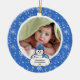 Cute Photo Christmas Ornament featuring an adorable Penguin set on a blue snowflake background, just add YOUR PHOTO! Perfect for first christmas & second christmas. A Wonder Christmas gift sure to be treasured for many years to come.