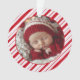 New parents can commemorate your miracle baby's first Christmas with this sweet photo ornament with a classic red and white hand drawn peppermint stripe featuring a photo on one side and your text on the back.