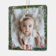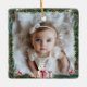 Customer specific, Baby's First Christmas – Photo, Rustic, Baby Rabbit with Santa Hat & Gifts, Watercolor, Ceramic Ornament