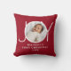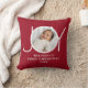 This festive Baby's First Christmas Photo pillow is decorated with the word JOY on a maroon red background.