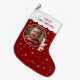 Celebrate the newest member of your family in style this Christmas with our Baby's First Christmas Photo Stocking, featuring a photo aperture on a red background, surrounded by a spattering of stars, snowflakes, and Christmas presents. There is plenty of space at the top for your little ones name and/or a message of your choice. Available in two options Double sided to include two different photographs of your little one, one on each side, or the cheaper option single sided to add one photo, and the reverse is just plain. Would make a perfect gift for the new parents.