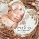 This beautiful baby's first Christmas gift ornament features pretty script lettering and a modern boho design. A sweet watercolor bear with balloon and bunny sits on top of the heart shaped ornament. Boho leaves and flowers border the pretty design. Personalised baby's name script and your custom birth year are easily personalised on the front of the new baby holiday ornament. The back is one full photo of your newborn baby. This elegant keepsake makes a thoughtful gift for a new mum or dad or expecting parents, and can also be a announcement gift from parents to friends and family to share your child's birth.
