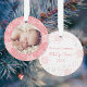 Baby's First Christmas Pink Silver Snowflakes Ornament