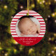 Celebrate baby's first Christmas with this red-striped ornament. Personalise with a photo, name, and the year.