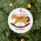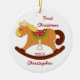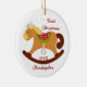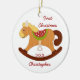 Personalise this baby's First Christmas tree ornament featuring a cute wooden rocking horse image with your child's name and date. Formatted text all ready for you to edit in the easy Zazzle text editor. Created in part with graphics by Scrappin Cop at www.scrappincop.com and www.colorfulclipart.com.