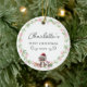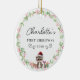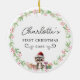 Commemorate your baby's first Christmas with this elegant, customisable round ceramic ornament. The design features a charming, minimalist wreath with a sweet racoon, gift packages, handwriting font, offering a blend of rustic simplicity and timeless elegance. In the centre of the wreath, you can personalise the ornament with your baby's name, beautifully showcased in a delicate script font.