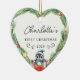 Commemorate your baby's first Christmas with this elegant, customisable round ceramic ornament. The design features a charming, minimalist wreath with a sweet penguin, gift packages, handwriting font, offering a blend of rustic simplicity and timeless elegance. In the centre of the wreath, you can personalise the ornament with your baby's name, beautifully showcased in a delicate script font.