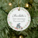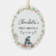 Commemorate your baby's first Christmas with this elegant, customisable round ceramic ornament. The design features a charming, minimalist wreath with a sweet penguin, gift packages, handwriting font, offering a blend of rustic simplicity and timeless elegance. In the centre of the wreath, you can personalise the ornament with your baby's name, beautifully showcased in a delicate script font.