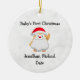 Heartwarming and delightful "Baby's First Christmas" ornament featuring a Santa Christmas theme. The cute Santa clip art is set on a white marbleised background. This keepsake can be personalised with your baby's name and date of birth and/or year. Capture the pure joy and innocence of your child's First Christmas with this charming ornament as you place it on the tree. It will provide holiday cheer year after year.