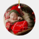 Celebrate your baby's first Christmas with this elegant and timeless photo ornament, featuring the text "Baby's First Christmas". With it's classic design this keepsake will hold cherished memories for years to come. Perfect as a gift for new parents or to add a special touch to your own tree, this ornament is a beautiful way to commemorate this precious milestone.