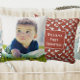 This red snowman pattern throw pillow features a cute photo of your baby on the front with baby's first christmas on the reverse. To change the text and picture click on the personalise button. Contains A.I.