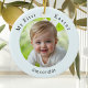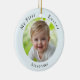 Celebrate baby's first Easter with this elegant custom ornament. The decoration displays your baby's photo, with 'My First Easter' curved above and their name below the picture. On the back, add the year number and your own message for an extra individual touch. The hanging ornament is the perfect keepsake gift for new parents looking to capture the joy of baby's first Easter.