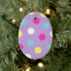 This cute Easter ornament features a decorated egg pattern with a purple background and colourful polka dots. The back text reads "Baby's First Easter." Personalise the back of the ornament with your baby's name and the year.