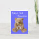 Sweet baby's first Hanukkah greeting card. A lovely periwinkle blue background, with a photograph of a soft tan teddy bear holding a silver Star of David. Baby's First Hanukkah, in white text, on the front. Personalise the text inside and out to suit your holiday needs.