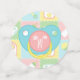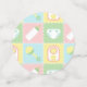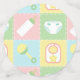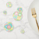 Four squares in soft pastels of pink, green, blue, and yellow are framed by a white design like stitch marks and decorated with cute, baby-themed icons of a bottle, diaper, rattle, and bib. Each piece of confetti has a pacifier-shaped monogram spot on the back, where you can customise it with the baby's initial to create a truly unique party decoration for your baby shower. This confetti will match with any other Baby's Quilt product so that you can easily make your event as coordinated as you desire.