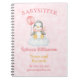 A sweet cute Babysitter , Childminder, Nanny notes and record notebook . Adorable baby penguin sitting on a cloud whilst holding a pink balloon with a pink cloudy background. A great book to record feeding and sleeping times, appointments and any milestones reached by the child. All text can be customised to your own requirements - using a pink and gold coloured text. Add your business details and name. Simple, colourful design for a Childminder, babysitter nanny, Au Pair, daycare, childcare services and nurseries.