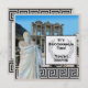 Bacchanalia are wild and mystic festivals of the Greco-Roman God Bacchus (or Dionysus), and this square pearl shimmer invitation invites you to join in the fun. Background image is a structure in the Roman Forum bordered by a black Greek key. See matching puzzle invitation and favour box. See the entire Toga Invitation collection in the INVITES | Invitations & Cards section.
