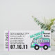 This bus is headed to one unforgettable party night. Create your own itinerary on this bus pass, change ticket colour too. Customisable for any event.