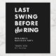 Elevate your celebration with this bold “Last Swing Before the Ring” wine bottle label, featuring clean modern typography on a sleek black background. Perfect for bachelor party favors, golf outings, or weekend gifts, it adds a polished and cohesive touch to your event. Personalize with the groom’s name and date for a standout keepsake.
