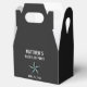 This star themed favour box is a fun way to package wedding favours that you can give the guys, including your groomsmen, as a gift from your bachelor party outing. Personalise with the groom's name and the bachelor party date. The colours of the background and text and also the font can be changed to fit your preference.