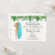 Tropical bachelorette beach party weekend invitation features blonde girl in swimsuit and surfboard. Event details on back of invitation. Can be customised for any event.