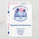 This is a stylish, bachelorette beach party design. It is a front and back design, On the front it has a tropical beach party logo design, with space for the Bride's name, with year and location/ venue of the party, weekend / getaway, with space for you to add your party and RSVP details underneath. On the back it has a retro pattern with the party logo and the text "Bride" in trending wavy typography. To personalise simply add your bride's name and party details using the personalise this text box. For help with personalisation, matching products, or for a custom design contact me via zazzle chat.