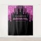 Chic and fun personalised photo booth tapestry for your bachelorette party featuring sparkly hot pink faux glitter dripping down from the corners against a black background and "Bachelorette Party" in a hot pink script. You can further personalise with your name and party date.