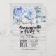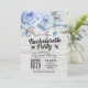 Bachelorette Party / Bridal Shower Invitation Card Template - Elegant Blue Watercolor Natural Boho Floral Feathers and Handwritten Script on Rustic White Wood Background.