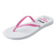 The flip flop is great quality and comfortable. It arrived on time and fit perfectly. I got this for oldest daughter who is my Junior Maid of Honor and she adored them. The printing was centered and just as I expected and hoped. Perfect!