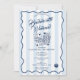 A colorful hand drawn playing cards dice casino theme design. A beautiful design perfect for Bachelorette weekend parties. This Bachelorette Party invitation includes a weekend itinerary on the back. A retro modern vintage blue and white striped Bachelorette weekend invitation.