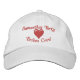 A romantic red love heart design graphic with your custom text to make a great cap for your bachelorette party crew or hen party bash, easily customise the brides crew text for your members of your wedding entourage, change the colour of the text and valentine heart embroidery to coordinate with your hat colour. She will look great wearing this fun modern design at her special bash, her last fling before the ring and special big day. With a pretty font that can easily be changed from a range of custom colours of your choice. Can be customised for other spacial girly occasions and events.