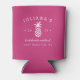 Kick off your bachelorette party, girls weekend or trip with these unique custom can coolers. Personalised design in vibrant magenta pink features the bride to be's name, event type, year and destination flanking a white pineapple silhouette illustration.