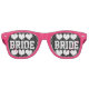 Bachelorette party shades | props for brides gag. Team bride bridesmaid bachelorette party shades. Funny props for friends of soon to be married women. Cool wedding / marriage accessory for bridesmaid, maid of honour, flower girl etc Girls night out / Ladies night / bridal shower gathering. Cute sunglasses with custom personalised text and little love hearts. Customisable frame colour and background colour. ie girly pink. Fun gag party props for events. Make one for brides mother, sister, aunt etc.