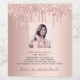 Can be used on front on a bottle, but is ment for the back. For a fun bachelorette party. Personalise and add a photo of the bride to be. Add your text, fun facts, biography about the bride, and your names. A trendy rose gold coloured background decorated with faux glitter drips, paint dripping look in pink and rose gold.
