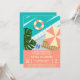Dive into a bachelorette bash with this poolside paradise invitation. Featuring a top view of a refreshing pool scene, complete with turquoise blue water, a pool float and lush palm tree leaves. A coral sun umbrella provides shade over a comfortable poolside lounger, and a pair of flip flops rest nearby. Set the tone for a sizzling send-off with this pool party invitation, perfect for celebrating the bride-to-be in style. Easily edit the text templates for your own personalised invite. Available as printed invitation cards or as an instant download to send on your phone.