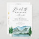 Bachelorette weekend in the woods invitation with itinerary on the backside. Featuring watercolor illustration of mountains, tree and a lake with camping accessories on the backside. Customise with your text. Click "click to customise further" to change the font style, size or colour and move text boxes.