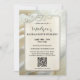 Bachelorette weekend getaway invitation program template with elegant silver floral swirls on an ivory background with a painted rose. An easy to customise QR code template is added for your convenience.