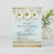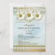 Hen or bachelorette weekend getaway invitation program template with a bohemian chic design with daisies on a painted background with rustic wood and lace.