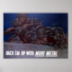 This vintage World War Two poster features two American Soldiers crawling through the grass, rifles in hand. It declares, "Back 'Em Up With More Metal". Celebrate American and WW2 History with this digitally restored vintage war poster product from The War Is Hell Store.